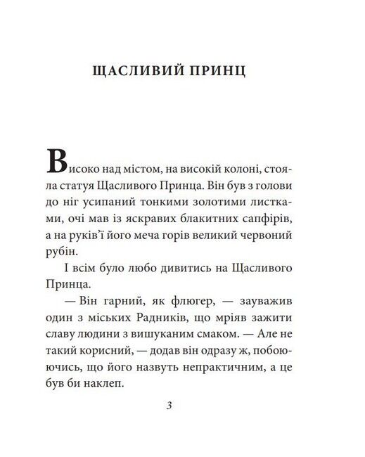 Свої перші казки видатний ірландський письменник Оскар Вайлд (1854–1900) опублікував 1888 року. Відтоді читацька цікавість до них не згасає. Адже кожна фантастична оповідка письменника, попри вдавану простоту, вирізняється захопливим сюжетом та оригінальним стилем викладу. Майстерність автора спонукає і дітей, і дорослих перейматися радощами та невдачами героїв, розмірковувати їхніми вчинками. Чому Щасливий Принц насправді був не таким уже й щасливим, а справжня дружба між Гансом та Мельником неможлива? Що мало статися, щоб Велетень поборов егоїзм і жадібність? Чи не зависоку ціну заплатив Соловейко за здійснення дива?
