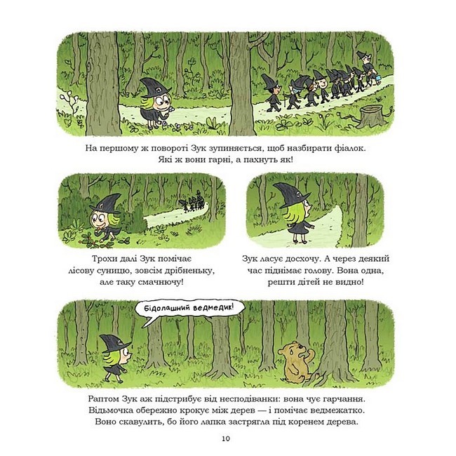 Відьмочка Зук готова поділитися кількома чаклунськими секретами, тож вирушаємо з нею у захопливу мандрівку! Спочатку завітаємо до лісу, потім — на уроки магії, де спробуємо створити любовне зілля (звісно, нам вдасться!). Наступна зупинка — чаклунська фабрика, де виготовляють мітли та чарівні палички і створюють найстильніший відьомський одяг. Трохи політаємо на мітлі у нічному небі, візьмемо участь у чаклунській дуелі — Зук знайшла собі гідну суперницю. А тепер час перепочити у найвидовищніших кошмарах!