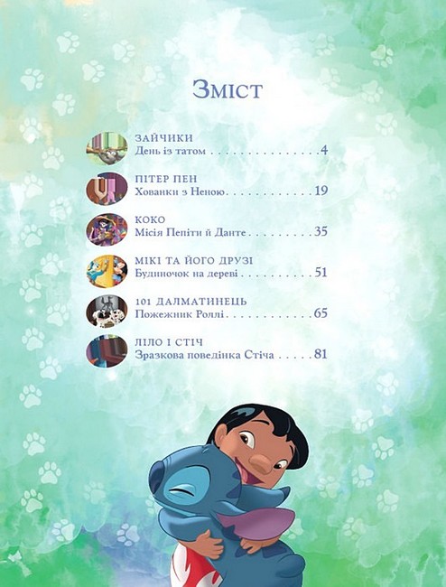 До збірки увійшли нові казки про улюблених героїв мультфільмів «Бембі», «Мікі Маус та його друзі», «Коко», «101 далматинець» та «Пітер Пен». Гортаючи сторінки з яскравими ілюстраціями, малюки перенесуться у казковий світ. Веселі, добрі та зворушливі оповідки неодмінно сподобаються і дітям, і дорослим.
