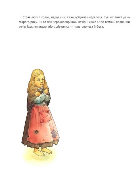 «Дівчинка з сірниками» знаменитого данського письменника Ганса Християна Андерсена — чи не найсумніша і найзворушливіша з його історій. За один вечір напередодні Нового року перед очима малої дівчинки мовби оживає її коротке життя, де були і тепла груба, й печена гуска, і ошатна ялинка, і найрідніша в світі бабуся. Оповідь нагадає кожному з нас про чуйність і добро в людському серці. А чудові ілюстрації видатного литовського художника Кястутіса Каспаравічюса подарують читачам незабутнє враження.