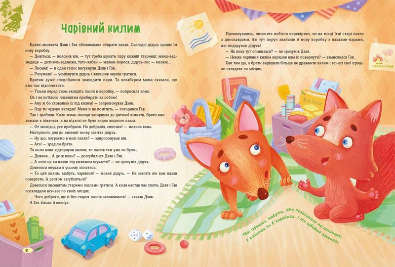 - книжка має аудіосупровід: увімкніть його, якщо натомилися за день, і слухайте казку разом з діточками.