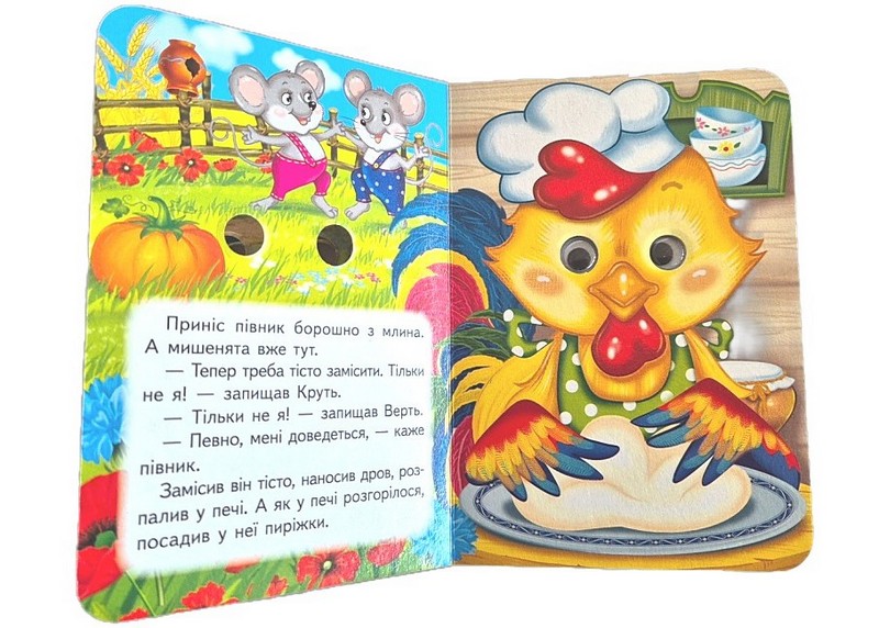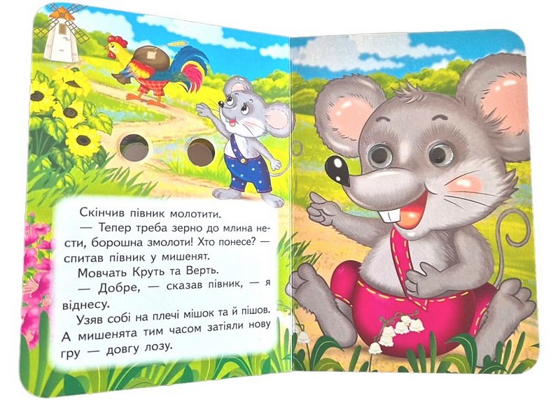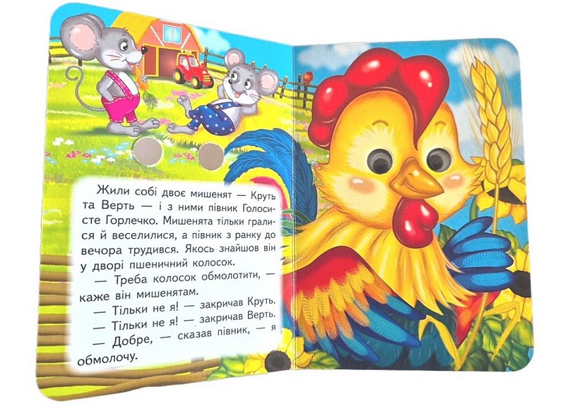 Книга-казка «Півник і двоє мишенят» — добра й повчальна казка з оченятами оживає в руках дитини