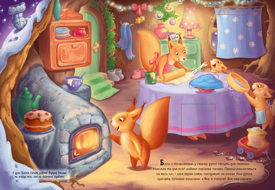 Як зустрічають звірята Святого Миколая, що приховують потаємні віконця на кожній сторінці, як приготуватися до візиту Миколая - про все розповість книга-картонка з віконцями.