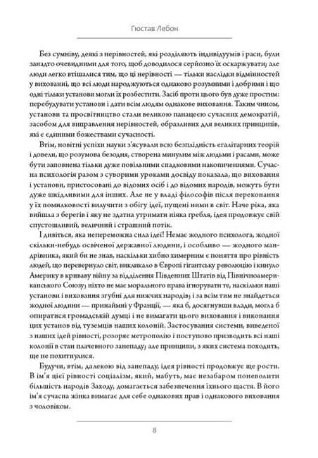 Гюстав Лебон (Гюстав Ле Бон) — французький психолог, соціолог, антрополог, історик та публіцист, найбільше відомий як засновник соціальної психології як науки і автор одного з перших варіантів доктрини «масового суспільства». Він обстоював ідею расового детермінізму в розвитку цивілізації. У якості підгрунтя соціальної еволюції він розглядав не розум, а ірраціонально-вольову, емоційну сферу психічного життя — почуття і вірування.