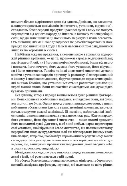 Гюстав Лебон обстоював ідею расового детермінізму в розвитку цивілізації. Як фундамент соціальної еволюції він розглядав не розум, а ірраціонально-вольову, емоційну сферу психічного життя — почуття і вірування.