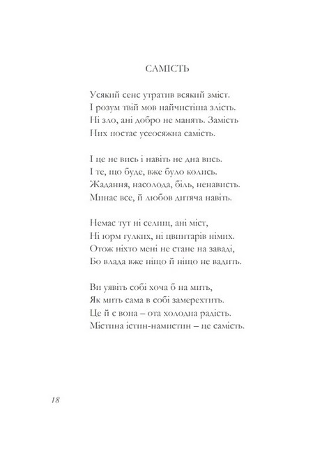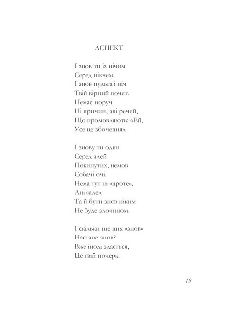 Вірші під цією обкладинкою безкомпромісні, вони відображають драматичний і болісний пошук, що до певної міри стосується нас усіх. А що в цих віршах немає страху, то вони можуть лякати. Ян Веріх казав, що страх, — це як відчуття дотику в пальцях: якщо його нема — вхопишся за полум’я й згорить рука…