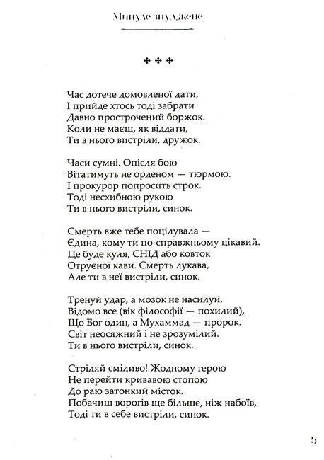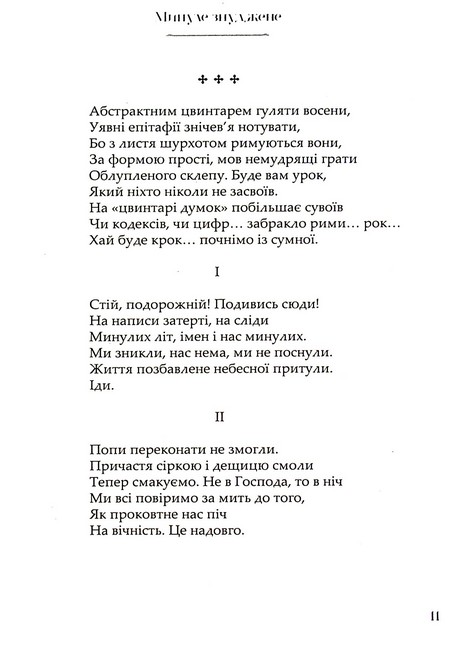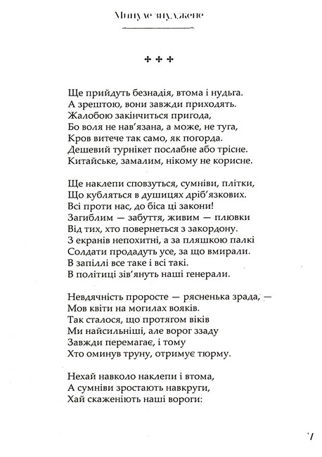 «Минуле знуджене» – це спроба автора прорватися крізь окопи сучасності, знайти опору в поетиці минулого і спорудити передовий спостережний пункт у сірій зоні, де панують примари майбутнього.