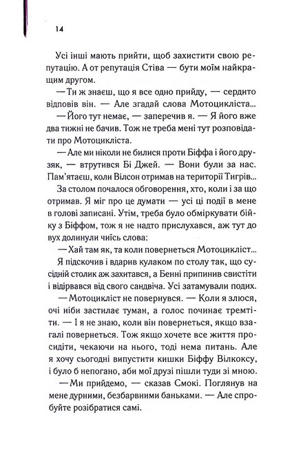 «Бійцівська рибка» — це книга, яка торкається серця з перших сторінок. Сьюзен Елоїз Гінтон створила історію про підлітків, що змушені дорослішати раніше, ніж хочеться. Головний герой, молода дівчина на прізвисько Бійцівська рибка, живе у світі, де важко бути слабким, де дружба і довіра перевіряються щодня, а кожна помилка може коштувати занадто дорого. Це не лише роман про підліткове життя, а й глибока розповідь про пошук власної ідентичності, любов і біль втрат.