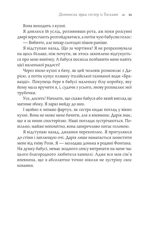 Бо це теплий, натхненний роман про жінок, які вчаться прощати і починати заново. Лорі Нельсон Шпільман створює чарівну атмосферу Італії, де сонце стирає біль, а любов повертає віру в себе. У книзі поєднано емоційність сімейної драми, легкість жіночої прози та глибину справжнього життя.