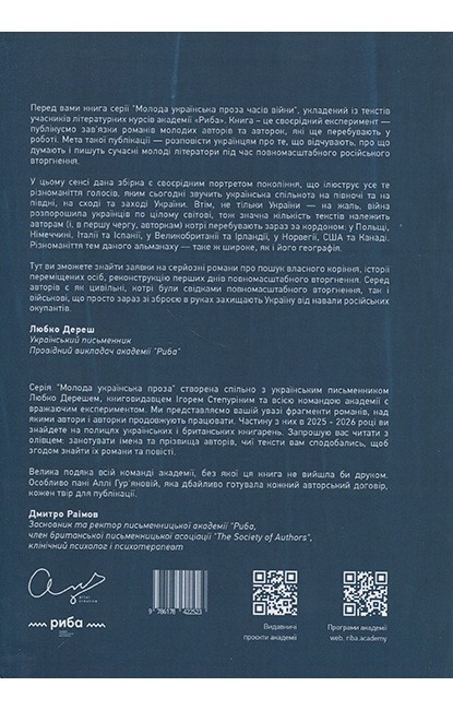 Це сучасна українська проза, зібрана в єдину літературну антологію. Книжка буде цікавою для студентів, дослідників літератури та всіх, хто прагне зрозуміти, як молоді автори переживають і осмислюють війну та життя поруч із нею. Це видання для тих, хто шукає щиру, актуальну й емоційну прозу.