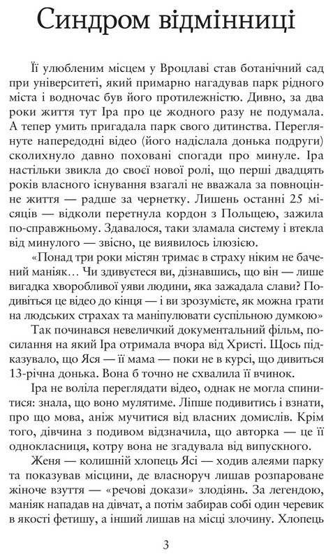 “Місто втечі” — це прониклива історія про те, що відбувається, коли людина опиняється на межі і змушена шукати вихід там, де, здається, немає жодного шансу. Атмосфера книги починається з тихого напруження, яке наростає з кожною сторінкою, ніби ти сам занурюєшся у зарослі стежки, що ведуть у невідомість. Авторка майстерно створює простір внутрішнього занепокоєння, де кожне рішення стає кроком у темряву або кроком до власного порятунку.