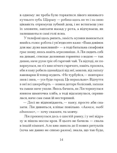 Здається, в такі моменти вона роздумує, зануритись туди чи ні, хоча іноді на обличчі проступає тривога — ніби довго вдивлялася в глибочінь і тепер не може звідти вирватися…».
