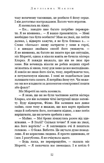 Якщо Фіона чогось і навчилася в житті, то це вмінню зберігати таємниці — особливо від батька, який її виростив. Вона — єдина людина, якій відомо про давній роман її покійної матері з виноробом із Тоскани. Фіона старанно зберігає цей секрет... аж доки їй не телефонує адвокат з Італії із надзвичайною новиною: її біологічний батько помер і залишив їй неймовірний спадок, а також зведених брата і сестру. Фіона вирушає до Італії, де її нові родичі рішуче налаштовані оскаржити заповіт. Таємниця роману її матері поступово розкривається, а Фіоні доводиться пробиратися крізь переплетені родинні стосунки та напружене суперництво між братом і сестрою. Фіона водночас боїться і радіє можливості змінити своє життя, намагаючись дізнатися правду про доленосне літо, що її мати провела в Італії, і про батька, якого вона ніколи не знала.