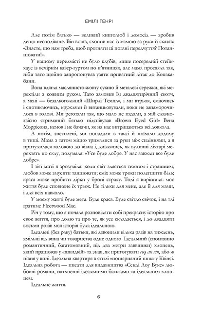 У книзі «Пляжне чтиво» Емілі Генрі блискуче поєднує гумор, глибину й справжню хімію між героями. Дженьюері — яскрава, романтична авторка, яка переживає творчу кризу. Августус — серйозний, похмурий письменник, який зневажає щасливі фінали. Випадково вони опиняються сусідами — і кидають одне одному виклик: за літо написати книгу в жанрі іншого. Але за літературною грою ховаються справжні емоції, спогади й нове, несподіване кохання.