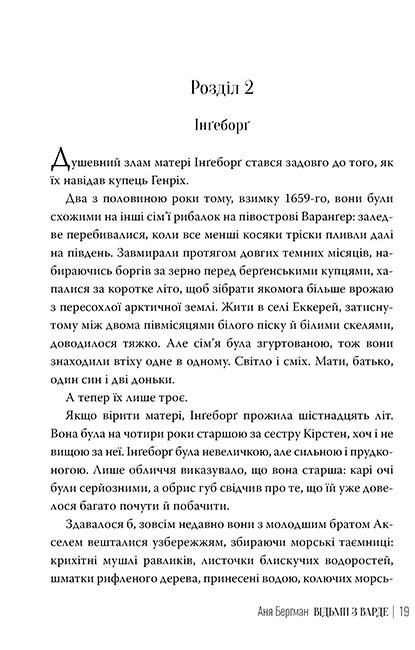 Північна Норвегія, 1662 рік. Морська буря забирає життя майже всіх чоловіків у рибальському містечку Варде. Жінки залишаються самі — і саме тоді починається полювання. Не на хижаків, а на них самих. «Відьми з Варде» — це глибоко зворушлива історія про матір, доньку, несправедливість і той крижаний страх, що ховається за маскою релігії та влади. Це книга, яка не відпускає до останньої сторінки.