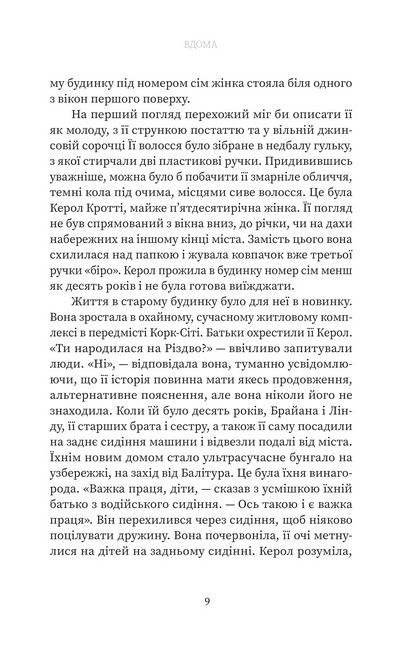 Роман автора міжнародних бестселерів і ведучого «Шоу Грема Нортона» — це історія про сімейну драму, поєднання літературної фантастики та містики. Дія роману розгортається у вигаданому ірландському містечку Балітур. Вчителька англійської мови Керол Кротті втрачає чоловіка, і минають роки, перш ніж вона знову закохується. Ніхто не розуміє, що вона бачить у Деклані Баррі, літньому чоловікові, дружина якого зникла багато років тому. Коли пізніше у Деклана діагностують ранню стадію хвороби Альцгеймера, його діти, Кілліан і Саллі, переселяють його до будинку для літніх людей. Керол змушена виїхати з дому, у якому вони жили разом з Декланом. Згодом Керол дізнається правду про зниклу дружину Деклана. Взаємини героїв, спогади і реалії водночас відкривають таємницю вбивства, яку довго приховували… Загадковий і непередбачуваний сюжет роману нікого не залишить байдужим.