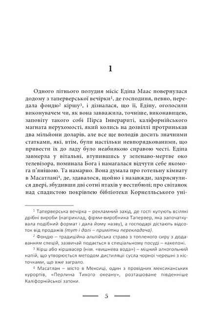 «Виголошення лоту 49» — це захоплююче занурення у світ таємниць, загадок і прихованих зв'язків, де кожна подія здається частиною великої головоломки. Пінчон створює простір, де реальність переплітається з сюрреалізмом, а герої — звичайні люди, втягнуті в незвичайні обставини — стають провідниками у цей незвичний світ. Читання книги нагадує дослідження заплутаного лабіринту, де кожна сторінка тримає у напрузі та інтригує.