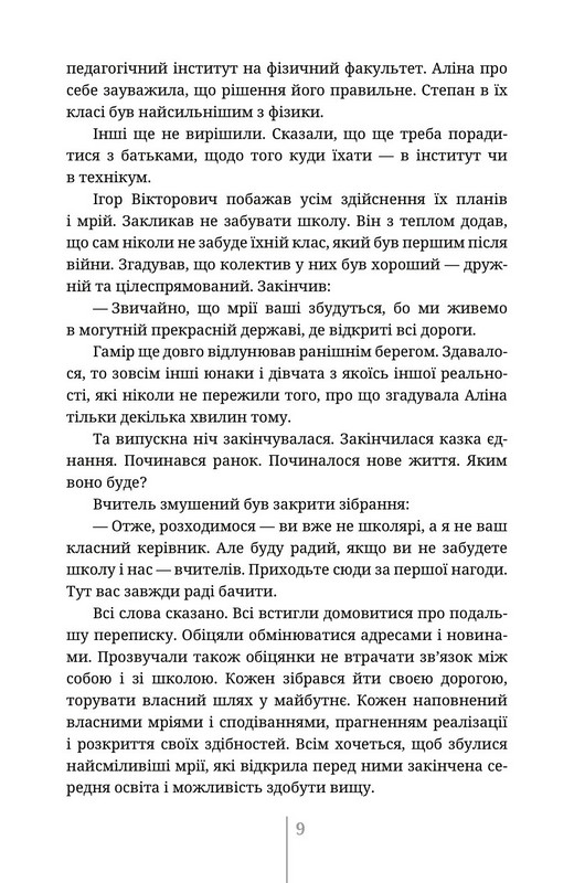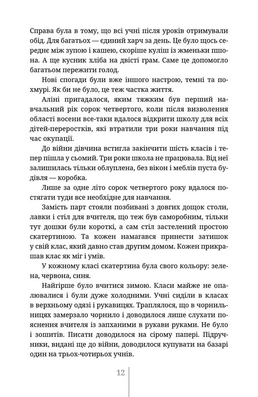Щойно закінчилася Друга світова війна. Випускниця з маленького містечка Аліна — спочатку захоплена учениця, що попри труднощі не втрачає оптимізму і приймає на віру радянську пропаганду. Далі — замріяна абітурієнтка, мрії якої про освіту постійно натикаються на перешкоди. Врешті — вчителька у чужому селі, де переживає зміни і набуває досвіду. Багато речей доводиться переосмислити у вирі звичних і незвичайних подій.