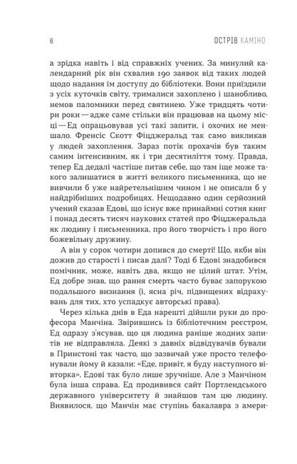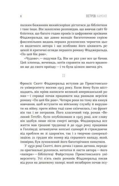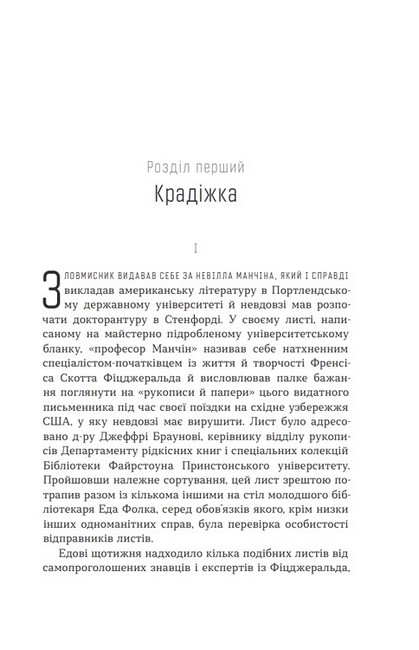 Вчинено зухвале пограбування: із захищеного сховища під бібліотекою Принстонського університету викрали надцінні рукописи Френсіса Скотта Фіцджеральда. Молодій та нещодавно звільненій письменниці-невдасі Мерсер Манн пропонують влитися до кола літературних знайомств Брюса Кейбла - власника книгарні на тихому курортному острові Каміно у Флориді та відомого колекціонера антикварних видань - аби вивідати про його оборудки на чорному ринку крадених книжок та рукописів. Та зрештою Мерсер вивідує більше, ніж їй належало - і це веде до вибухової розв'язки у фірмовому стилі майстра-детективіста Джона Ґрішема.