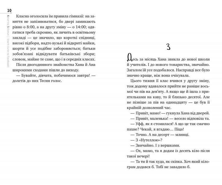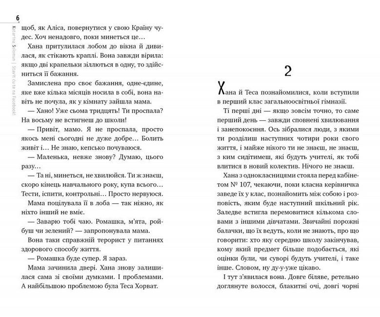 Повість хорватської письменниці Катаріни Соломун здобула на її батьківщині номінацію як одна з найкращих книжок 2018 року в списку Хорватського бібліотечного товариства.Хана й Теса познайомилися, коли вступили в гімназію. Та від самого початку в їхніх відносинах щось пішло не так: дві героїні йдуть у нове життя різними шляхами… Перше кохання, ревнощі й заборонені прийоми — ось ключові складові оповіді, що не дають відірватися від читання ні на мить. А поряд іще й батьки — із задавненими комплексами та різними поглядами на життя: подорослішати мають не лише діти.