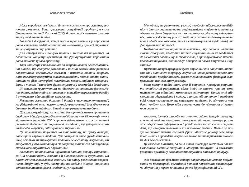 Автори, стоматологи-хірурги, впродовж 30 років прискіпливо досліджують і розшифровують ротові порожнини, щоби зрозуміти причини можливих аномалій і деформацій. Будучи одночасно і гуманістами, і стоматологами, у кожній ротовій порожнині вони відкрили пацієнта з його слабкостями, стражданнями, а насамперед – з його характером і особистістю, з його потенціалом і силами, котрі потрібно лише проявити.