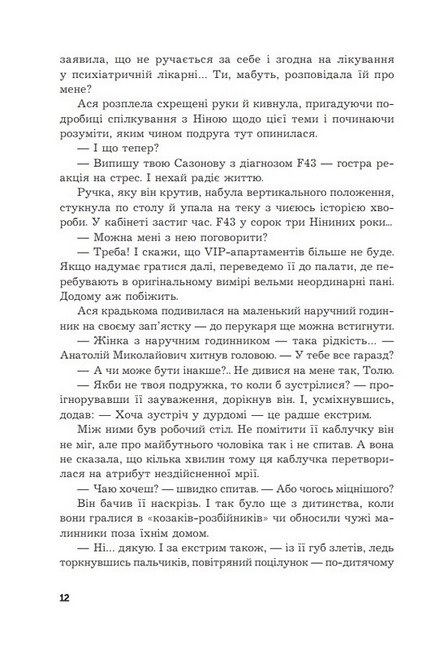 Цей роман про звичайних людей, але здатних на відчайдушні вчинки. Різні за поглядами й можливостями, вони будують класичні плани чи намагаються вийти за рамки стереотипів. Події відбуваються на Харківщині, здебільшого в Харкові. Пів року до повномасштабної війни. Молода журналістка Ася Горобець рятує подругу, котра потрапила до психіатричної лікарні, аби привернути увагу чоловіка. Подруга пропонує їй взяти у нього інтерв’ю. Ася відмовляється, але так чи інакше події підводять її до зустрічі з ним…