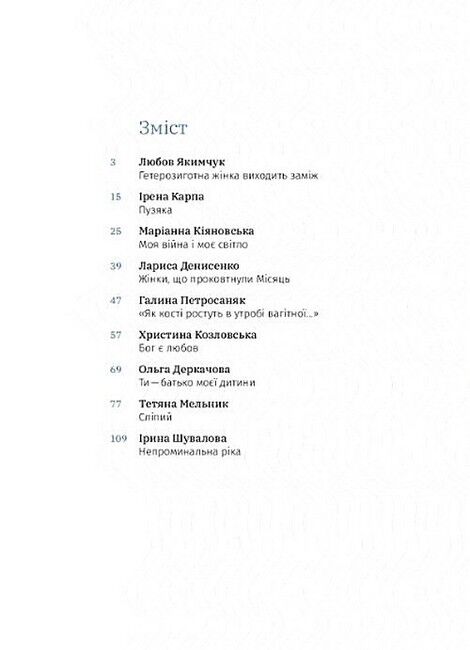 Дев'ять українських авторок розповідають свої власні й літературно переосмислені історії вагітності: від загальновідомих двох смужок на тесті, перших рухів, УЗД і до глибоких емоцій та станів, що неминуче проступають, коли жінка вже не одна, а носить у собі цілий новий всесвіт.
