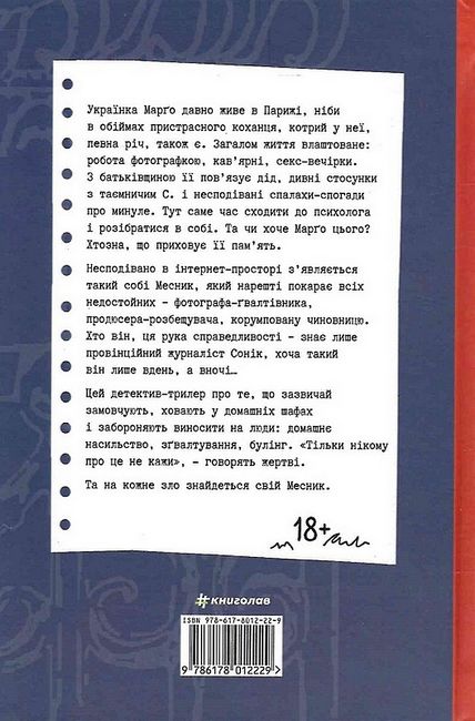 Що ж є причиною неспокою Марґо? Які шокуючі викриття у неї попереду? Чому її так захопила історія про Месника? Зрештою, хто він такий?