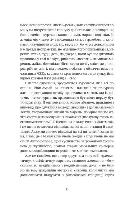 Ця збірка включає ранні оповідання Сергія Демчука. Вони оригінальні тим, що в них персонажі вписані у контекст свого часу, а це двотисячні. Непрості роки для простих мешканців міст і містечок - від підлітків до чоловіків, від дівчаток до жінок, як прийнято було казати, «зі складною долею», бо чого б то вчительці продавати на базарі парфуми?! Бути в когось, належати комусь, відчувати любов безсумнівну і прагнути любові реальної - цим живуть люди, що їдуть електричками, садять і копають картоплю, вчать хлопчаків сміливості чи пресують їх ні за що в міліції. Бо життя у своїй природній плинності і обдаровує, і позбавляє. Але воно - єдине й дорожче за все на світі.