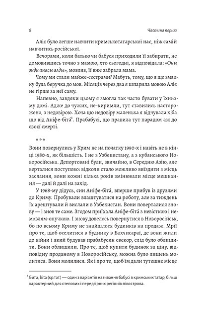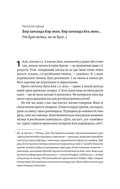 Соціально-психологічний роман із документальним підґрунтям. Підійде читачам від 16 років, які цікавляться історією Криму, питанням ідентичності, національної пам’яті та складних міжетнічних стосунків.