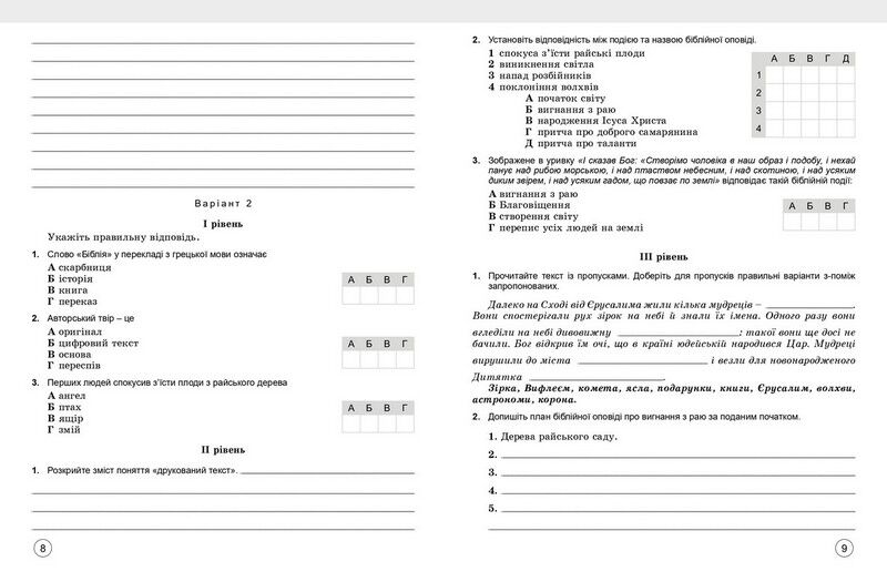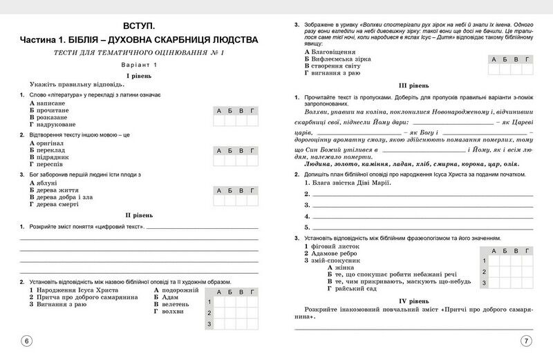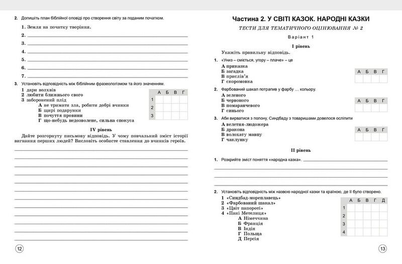Зарубіжна література. 5 клас. Зошит для тематичного оцінювання навчальних досягнень учнів