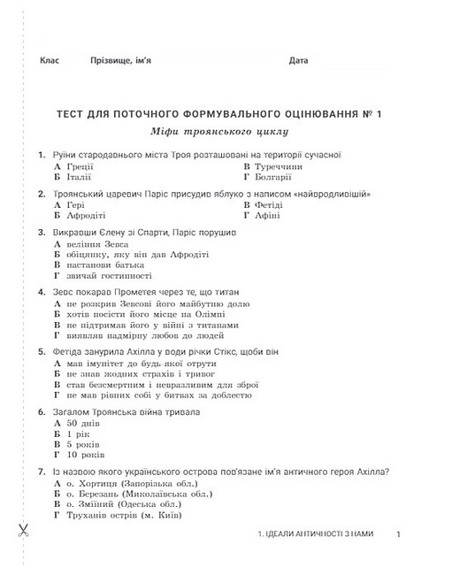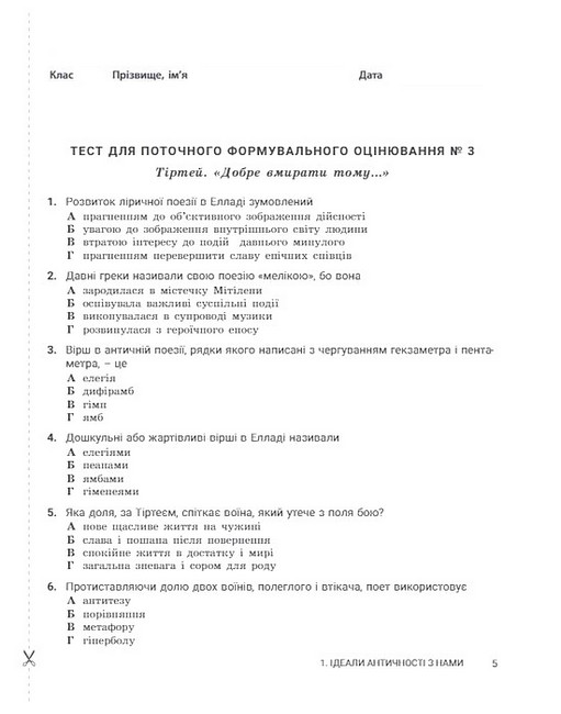 Українська література. 5 клас. Контроль результатів навчання