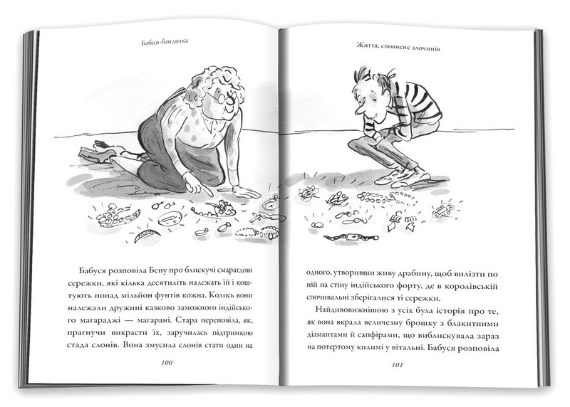 Знайомтеся, це Бенова бабуся. Вона наче зійшла зі сторінок підручника: товсті окуляри, сиве волосся, латки на закасаних рукавах. Та виявляється, що вона не найнудніша бабуся в світі, яка любить грати у Скрабл та їсти суп з капусти. Бен навіть не здогадується, що його бабуся... міжнародна злодійка, викрадачка коштовностей! Все своє життя вона планувала викрадення найкоштовніших каменів і зараз їй вкрай потрібна допомога онука Бена.