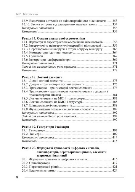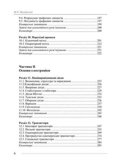 В першій частині підручника викладені основи побудови та перетворення електричних ланцюгів постійного і змінного струмів, приведені методи та алгоритми їх розрахунку. Окремо розглянуті трифазні ланцюги, взаємна індуктивність та перехідні процеси.В другій частині підручника розглянуті напівпровідникові діоди, транзистори, тиристори, симістори, управляємі тиристорні перемикачі та оптрони, логічні елементи, комбінаційні пристрої, елементи з пам’яттю, генератори, таймери, одновібратори, елементи затримки, формувачі цифрових сигналів, перетворювачі рівнів, індикатори, операційні підсилювачі, суматори, інтегратори та диференціатори, приведені програмуєми логічні матриці і джерела живлення різного електронного призначення.Теоретичний і практичний матеріал проілюстровано великою кількістю вправ і задач для набуття читачем практичного досвіду.Підручник призначено для студентів, аспірантів, викладачів і спеціалістів відповідних спеціальностей, а також окремі розділи підручника можуть бути використані студентами коледжів та технічних учбових закладів.