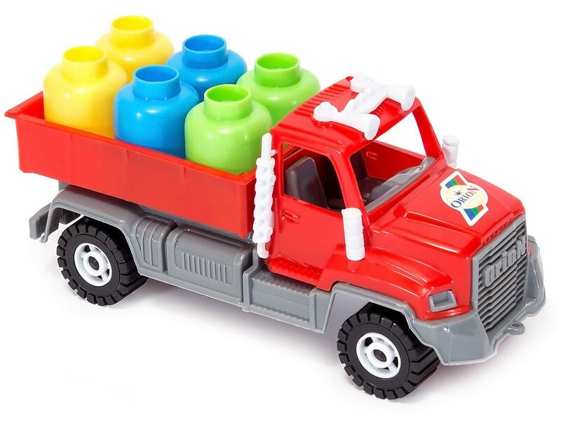 Машинка Камакс-Н бортовий надовго захопить увагу малюка. Вона виконана у формі вантажівки, яка перевозить вантаж. Великі колеса дозволяють гратися авиівкою не тільки вдома, а й надворі, у пісочниці. До комплекту окрім авто входять 6 балонів, які можна покласти у кузов.