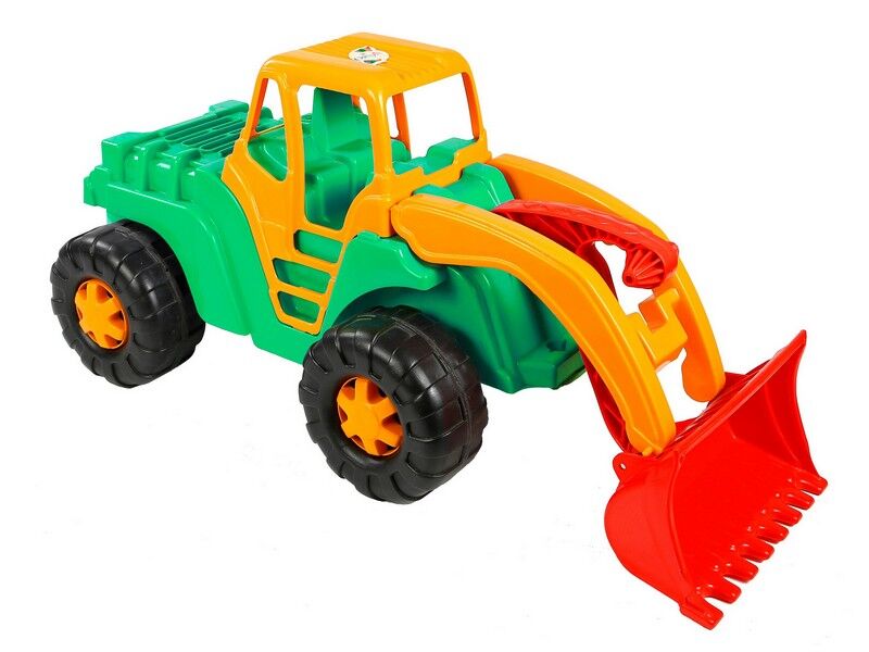 Трактор навантажувач великий має місткий ківш, яким можна робити навантаження піску в кузов дитячого автомобіля. Іграшка зручна для гри в піску, створюючи будмайданчик і використовуючи спеціальну техніку. Маючи таку модель трактора, дитина відчує себе важливим і відповідальним працівником, який виконує складні завдання. Якщо ви подаруєте своєму малюкові представлену модель трактора, то він не буде відволікати вас від домашніх справ. Іграшка настільки цікава і приваблива, що ваш малюк буде зайнятий нею цілий день.
