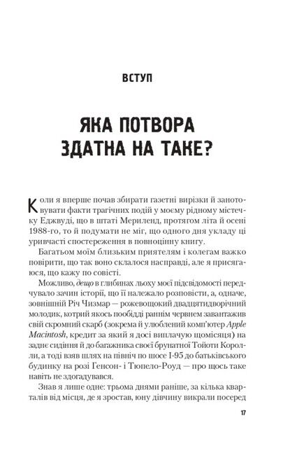 Літо 1988 року. У маленькому містечку Еджвуд знаходять понівечені тіла чотирьох зниклих дівчат. Містяни звикли до крадіжок, пограбувань і затримань із наркотиками. Але з появою жорстокого серійного вбивці місто остаточно втратило невинність. Хто ця потвора, що здатна на таке? ФБР підозрює психопата, який затіяв гру на виживання.