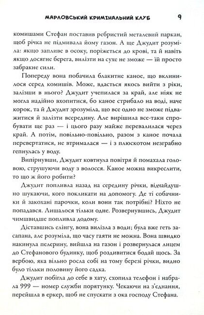 Для розкриття парадоксального вбивства потрібен і парадоксальний детектив! Сімдесятисемирічна Джудит Потс щаслива як ніхто. Вона мешкає сама-одна у старовинному особняку, складає кросворди для газет, і ніхто не диктує їй, що робити і скільки пити віскі. Але одного вечора, плаваючи в Темзі, Джудит стає свідком убивства. Проте місцева поліція не вірить її словам, тому Джудит вирішує взятися до розслідування сама, ще й залучити двох нових подруг. Але невдовзі в Марлові знаходять ще одне тіло, і жінки розуміють: у місті, схоже, з’явився серійний убивця. І тепер загадка, яку вони взялися розгадати, перетворюється на смертельно небезпечну гру…