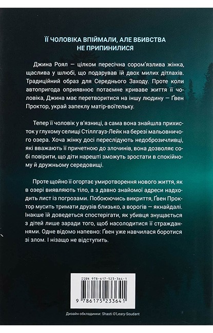 Проте щойно її огортає умиротворення нового життя, як в озері виявляють тіло, а з давно знайомої адреси надходить лист із погрозами. Побоюючись викриття, Ґвен Проктор мусить тримати друзів близько, а ворогів — якнайдалі. Інакше їй доведеться спостерігати, як убивця знущається з дітей лише заради того, щоб насолодитися її стражданнями. Одне відомо напевно: Ґвен уже навчилася боротися зі злом. І нізащо не відступить.