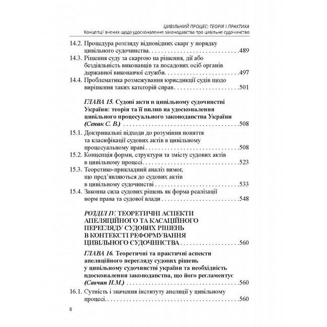 Ця монографія буде цікавою не тільки для самих авторів, розробників законопроєктів, які займаються дослідженнями цивільного судочинства, а й широкому колу фахівців, які у своїй практичній діяльності стикаються із проблемами, що виникають під час судового розгляду цивільних справ, зокрема суддям, адвокатам, нотаріусам, виконавцям, а також викладачам, аспірантам та студентам, які бажать удосконалити свої знання у даній сфері.