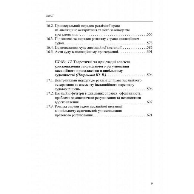 Дана наукова праця є комплексним науково-практичним дослідженням, у якому аналізуються істотні проблеми щодо реалізації особою права на доступ до правосуддя, зокрема, питання, які стосуються судового збору, його розмірів, видів проваджень цивільного судочинства, питання визначення критеріїв малозначних спорів. Заслуговують на увагу концепції вчених щодо реформи цивільного судочинства в умовах європейської інтеграції та його додаткових джерел. Надано аналіз наказного провадження та узгодження його із спрощеним позовним провадженням, окремого провадження, апеляційного та касаційного проваджень проваджень, суб’єктного складу учасників судового процесу та проблемні аспекти обмеження їх прав, вдосконалення інституту доказів та їх забезпечення. Проаналізовані особливості розгляду певних категорій цивільних справ, зокрема, медичних, справ про оскарження рішень, дій, бездіяльності виконавців, а також висвітлено проблеми, які мають місце при розгляді судом справ під час воєнного стану та шляхи їх вирішення, зокрема, проаналізована судова практика розгляду судом справ про встановлення нових фактів, які мають юридичне значення, а також адміністративний порядок їх встановлення.