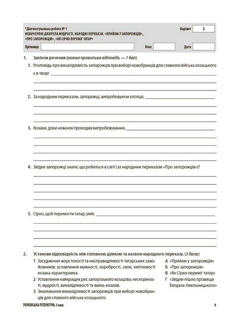 Відгуки про Українська література. 5 клас. Усі діагностувальні роботи
