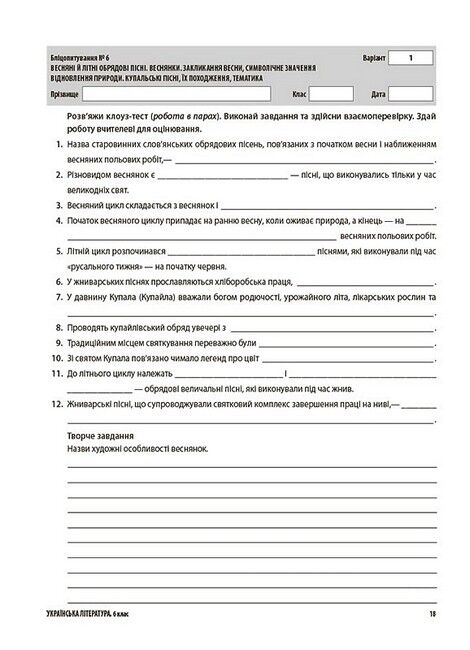 Українська література. 6 клас. Усі діагностувальні роботи - фото 5