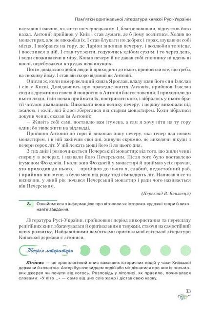 Підручник відповідає вимогам Державного стандарту та новій програмі з української літератури. Видання містить літературно-критичні статті, відомості з теорії літератури, біографічні матеріали про письменників/письменниць, художні твори (повністю й у фрагментах). Методичний апарат підручника охоплює різнорівневі завдання, зорієнтовані на вікові особливості дев'ятикласників і дев'ятикласниць.