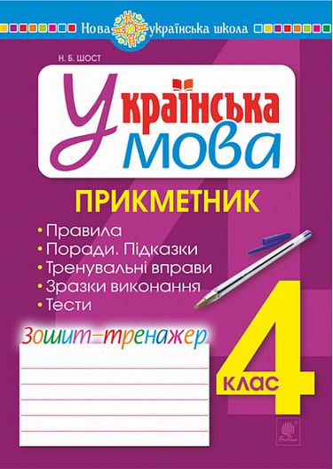 Запропонований зошит-тренажер з української мови для 4-го класу містить матеріал, який відповідає Державному стандарту початкової освіти та Типовим освітнім програмам. У посібнику представлено завдання та вправи, які сприятимуть закріпленню та узагальненню знань, умінь і навичок четвертокласників з теми «Прикметник». Наведено правила, зразки виконання завдань, підказки, контрольні тести. Використання зошита допоможе вчителям і батькам ефективно проводити індивідуальну (групову, диференційовану) роботу з учнями як в урочний, так і в позаурочний час.