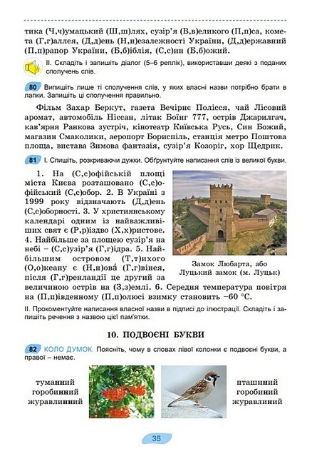 В окремому розділі вміщено «Уроки розвитку мовлення», які сприятимуть формуванню передбачених програмою мовленнєвих умінь і навичок.