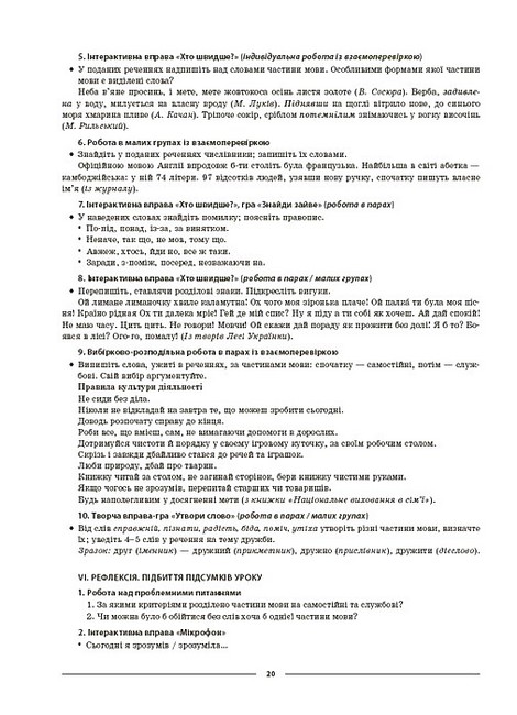 - інтерактивні форми роботи, завдання для роботи в парах, малих і великих групах;