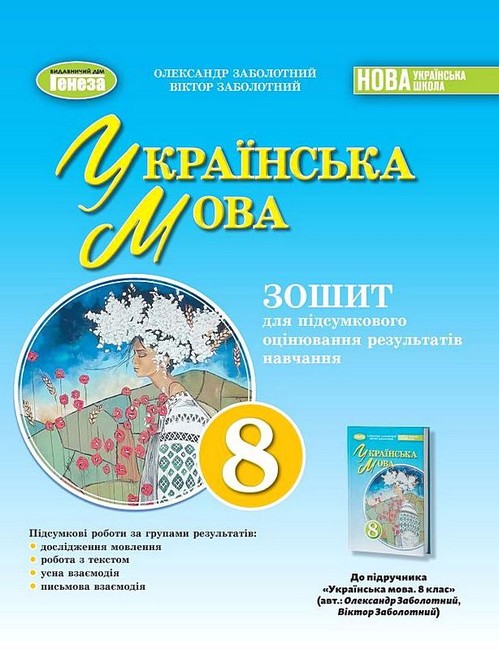 Зошит призначено для підсумкового оцінювання навчальних досягнень учнів / учениць 8 класу з української мови за групами результатів відповідно до вимог Державного стандарту базової середньої освіти.