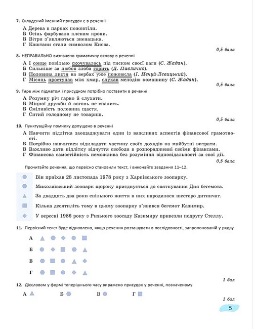 Тестові завдання розроблено з урахуванням моделі зовнішнього незалежного оцінювання, пропонованої Українським центром оцінювання якості освіти.