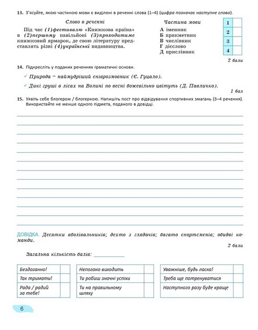 Відгуки про Українська мова. 8 клас. Зошит для підсумкового оцінювання результатів навчання
